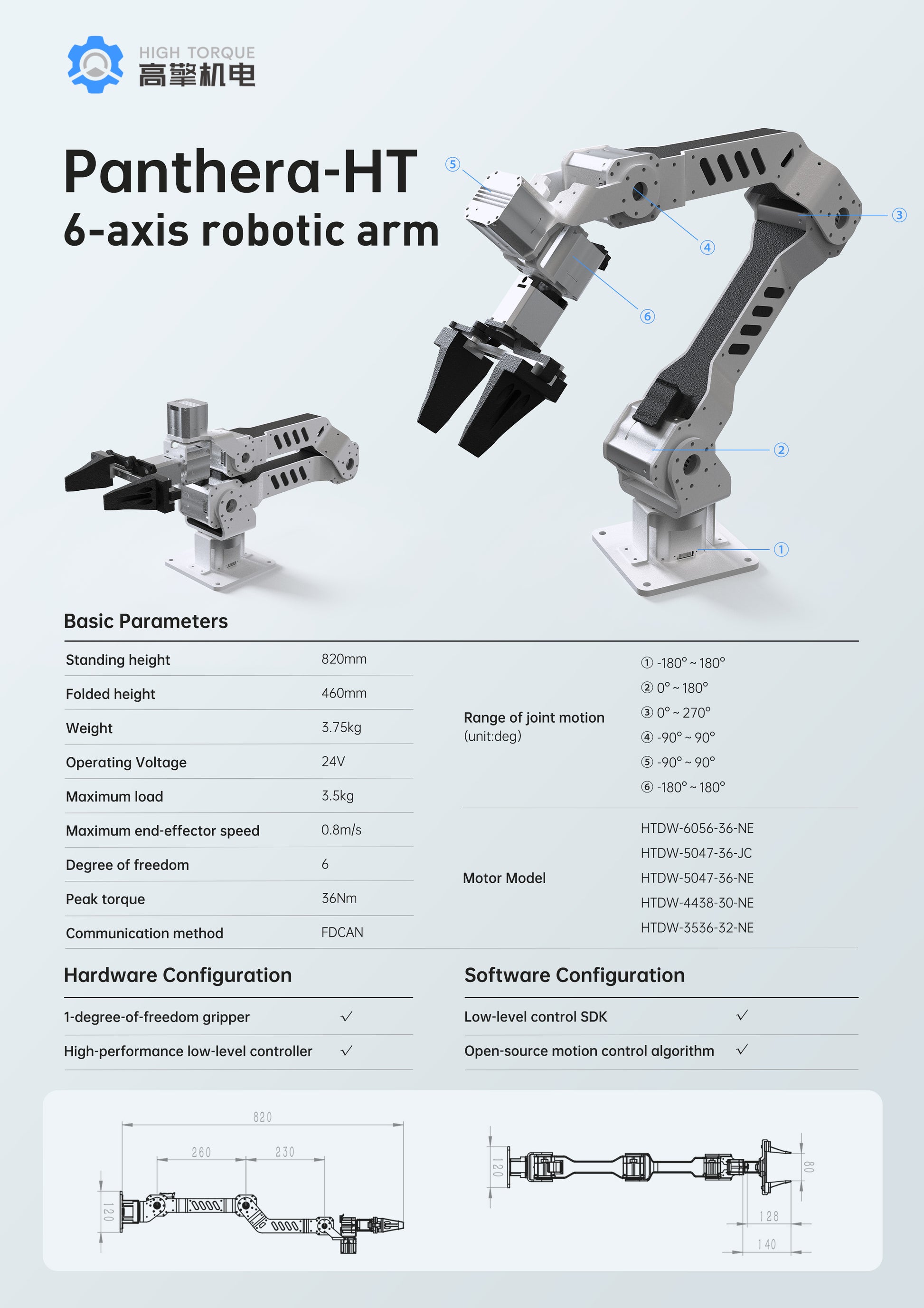 HIGH TORQUE Panthera-HT 6-Axis Robotic Arm